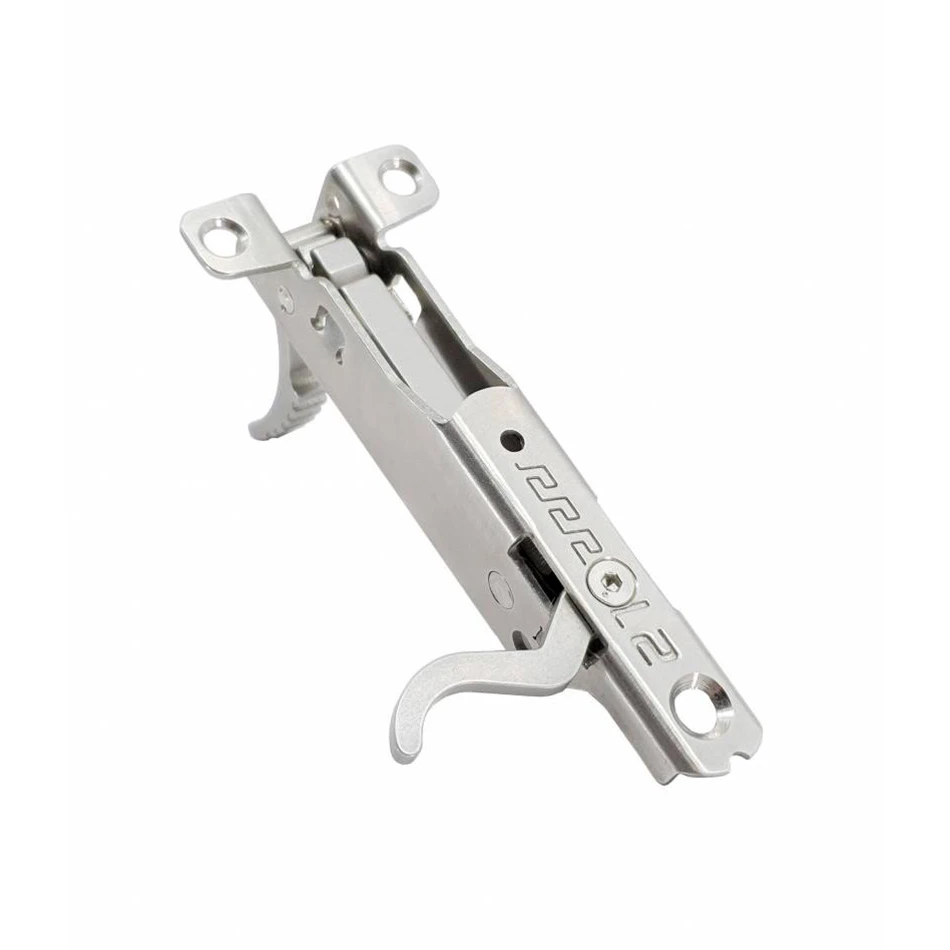 Il coopère avec les tiges de lance de type européen et américain, avec la possibilité de ligne de serrage dans la queue des arbres. L’indentation à l’arrière de la détente donne de l’élégance avec un poids minimal, c’est un point de caractéristique visuelle breveté de nos mécanismes.